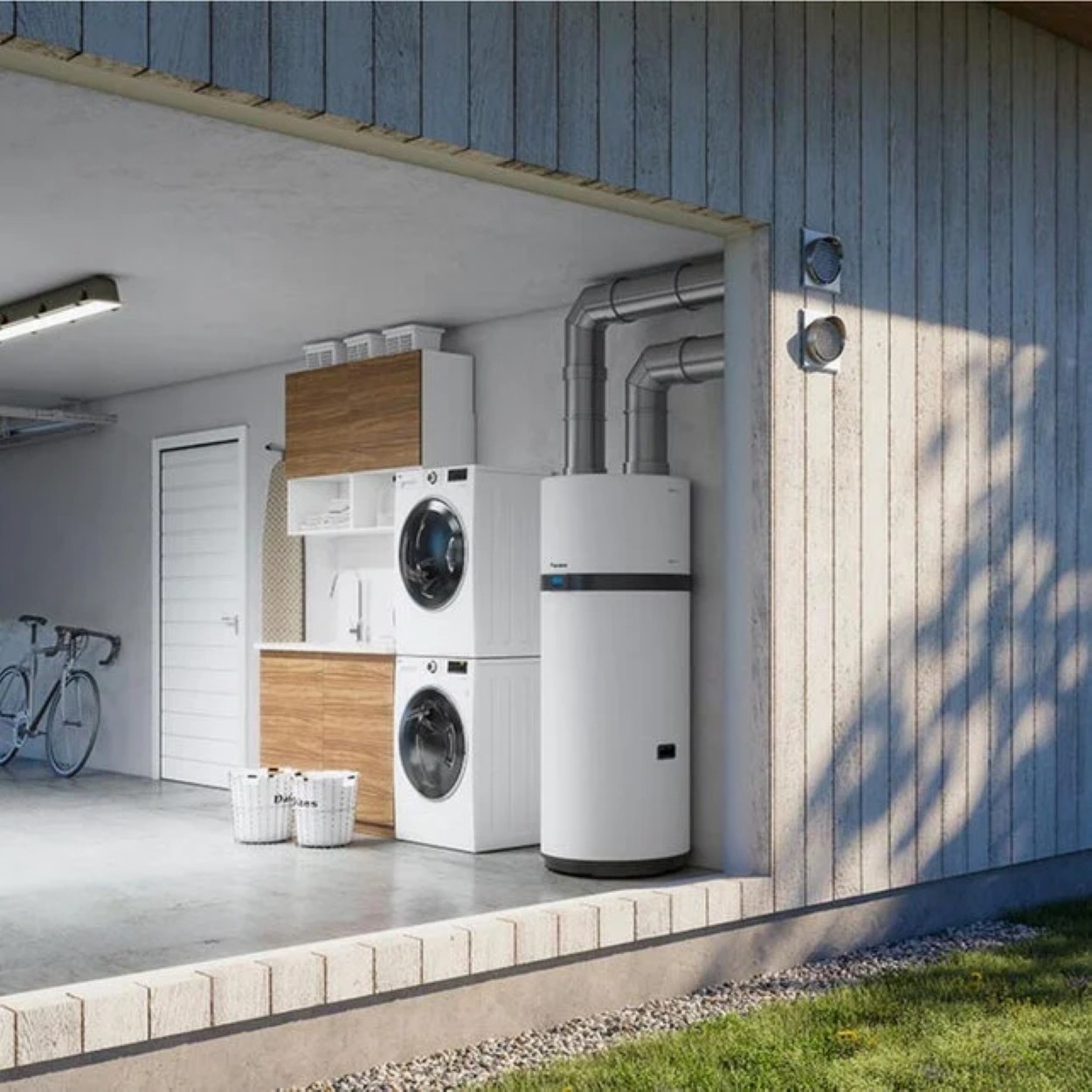 De warmtepompboiler combineert een zeer laag energieverbruik met een hoog rendement van 3,23 COP bij verwarmen.